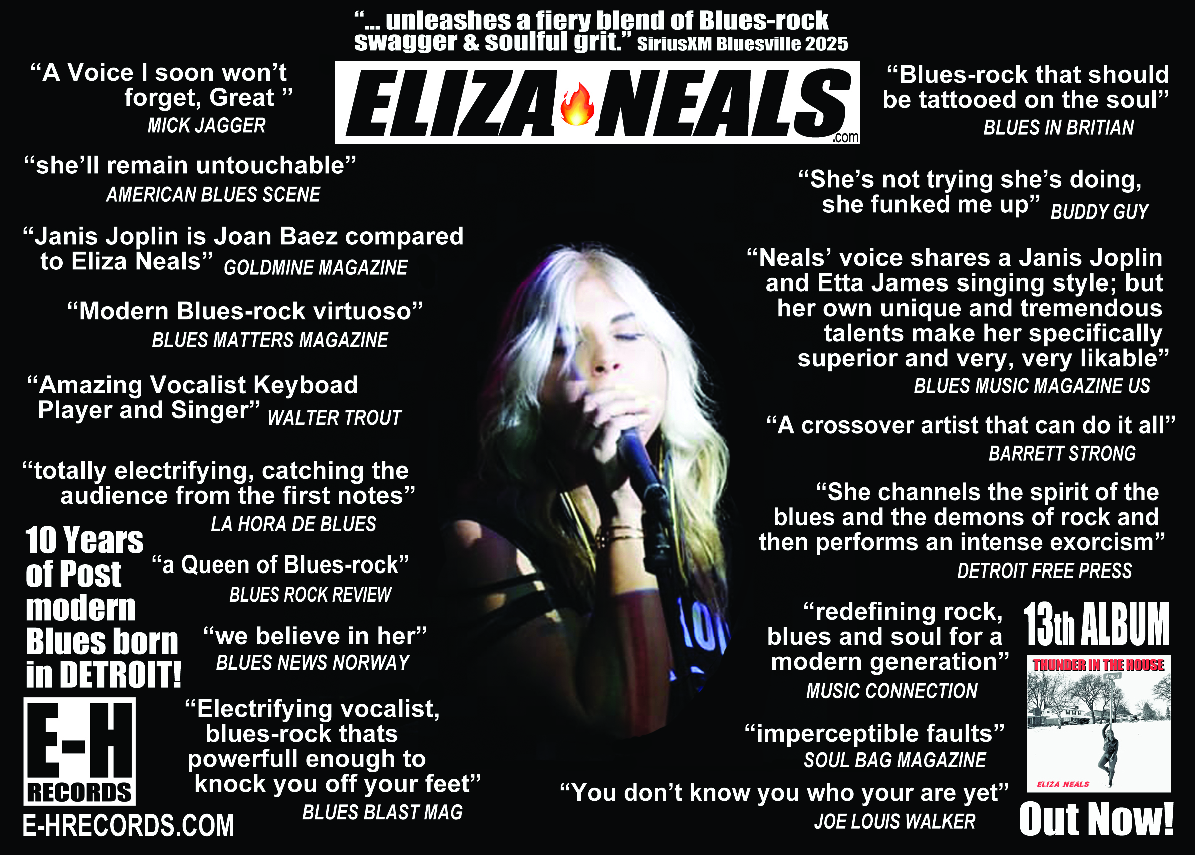 Hear ELIZA NEALS original American roots, blues-rock and modern blues releases on SiriusXM B.B. KING’S Bluesville Ch.75 since 2015! An international touring & recording artist!